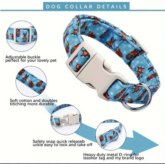 Adjustable Cotton Dog Collar with Christmas Reindeer Pattern